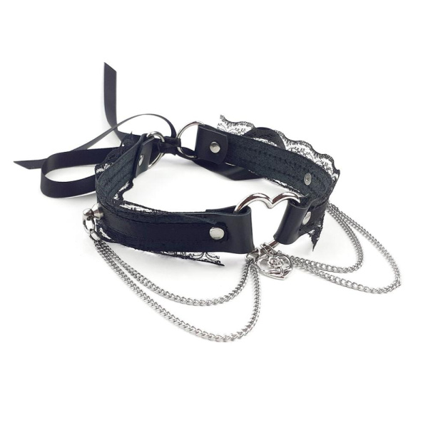 Чокер на шею Сердце Art of Sex - Paris, из натуральной кожи, цвет Черный