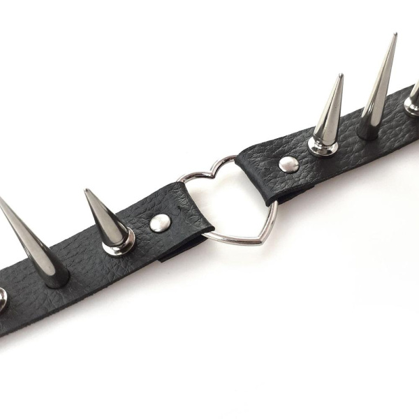 Чокер сердце с большими шипами, из натуральной кожи Art of Sex - Crystal, цвет Черный