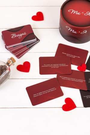 Коротко о правилах: Тяните карточки из разных колод и по очереди отвечайте на вопросы. Вытянули карточку «Расскажи» ― отвечаете на вопрос, который касается вас. Досталась карточка «Угадай» ― пытаетесь правильно ответить про вашего партнера.