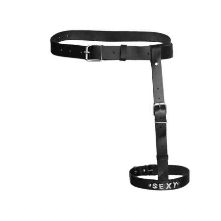 Гартер на ногу Art of Sex - Naomi с надписью SEXY, натуральная кожа, размер XS-2XL, цвет черный ||
