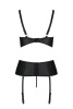 Бюст представляет собой открытую чашку, которая нежно обнажается и подчеркивает грудь, приподнимает ее. Соблазнительные полосы, которые плавно обрамляют тело, делают образ пикантным. Мужчина точно не устоит перед такой сексуальной красоткой, так что его внимание сегодня будет вашим. Стринги с низкой посадкой подчеркнут округлость ваших ягодиц, поэтому вы станете настоящей королевой ночи.