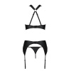 Сетчатый набор с узором: бюстгальтер с халтером, трусики и пояс для чулок Hima Set black XXL/XXXL - Passion: