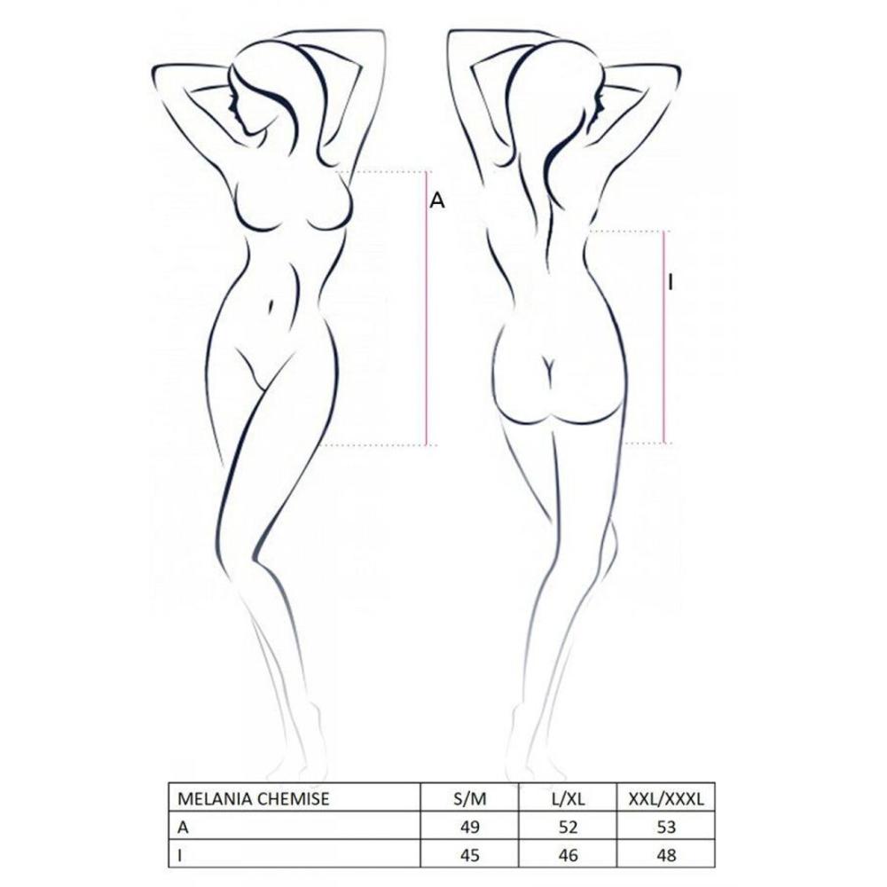 Предлагаем купить сорочку MELANIA CHEMISE black XXL/XXXL - Passion, нежную и женственную. Она плавно ниспадает прозрачными складками, под которыми угадываются возбуждающие контуры тела. Завязки позволяют регулировать глубину декольте. Стринги — в комплекте.